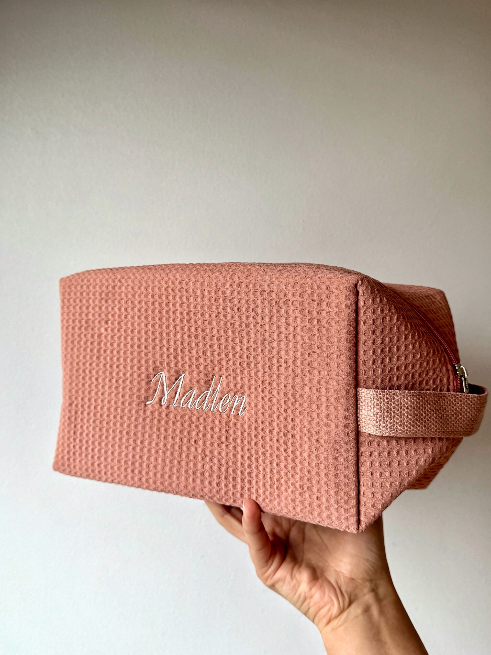 Практичен и елегантен козметичен несесер, изработен от висококачествен вафлен памук.